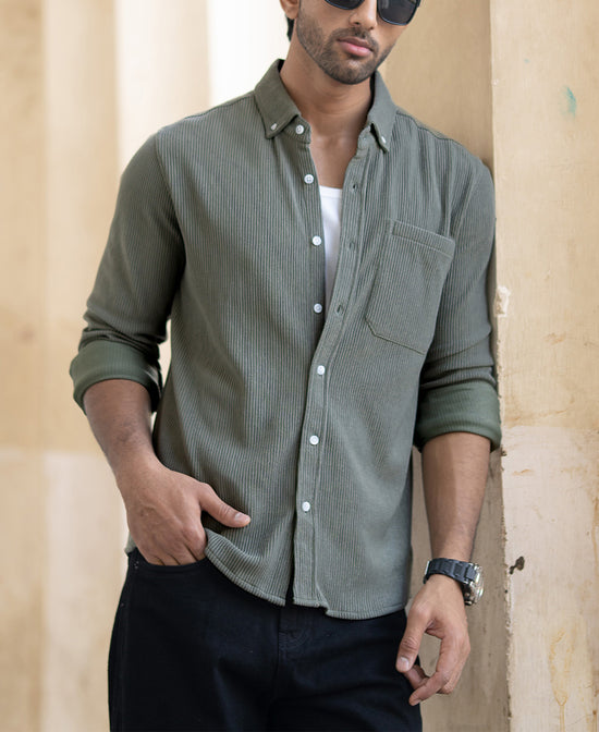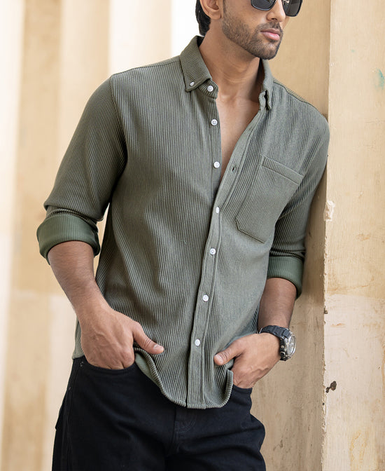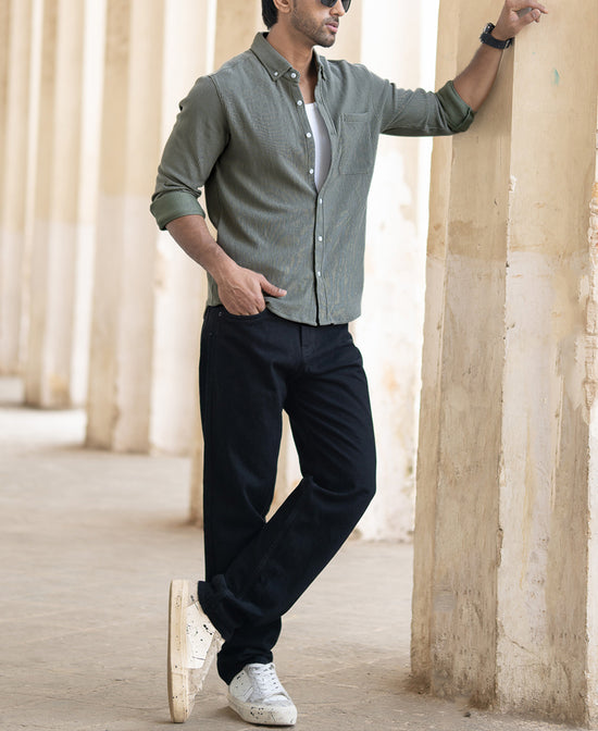 Agave green, full sleeves, and a vibe that’s both relaxed and refined. This shirt is designed for versatility, whether you're at brunch or a casual meet-up. The comfortable fabric and tailored fit give it a polished yet laid-back appeal. A go-to piece for those who appreciate effortless style with a subtle pop of color.