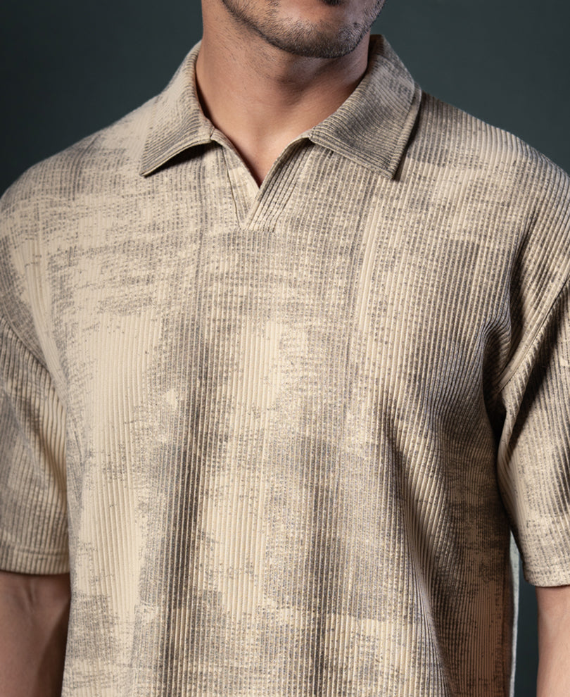 A softer interpretation of grunge aesthetics, this beige t shirt blends faded textures with a relaxed fit. The washed effect adds character while keeping the overall look clean and wearable. Easy to style with neutral bottoms for a laid back yet intentional outfit.