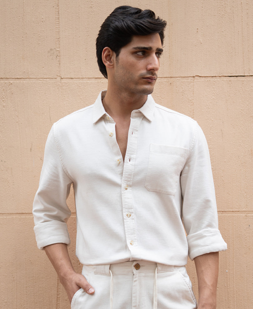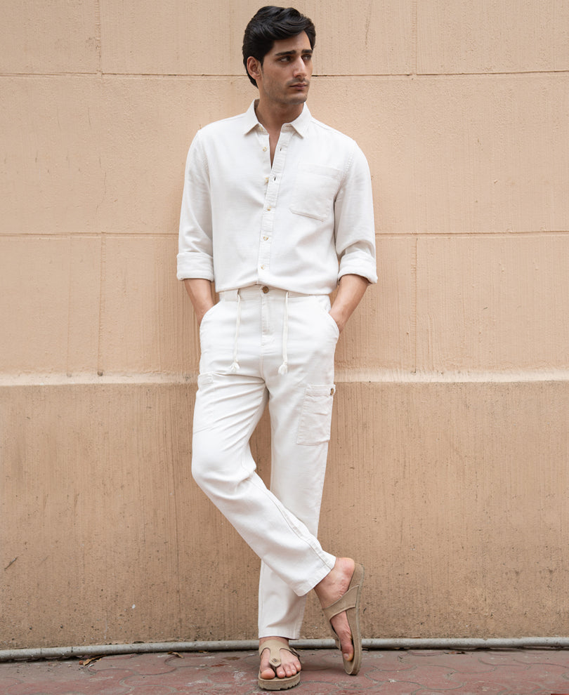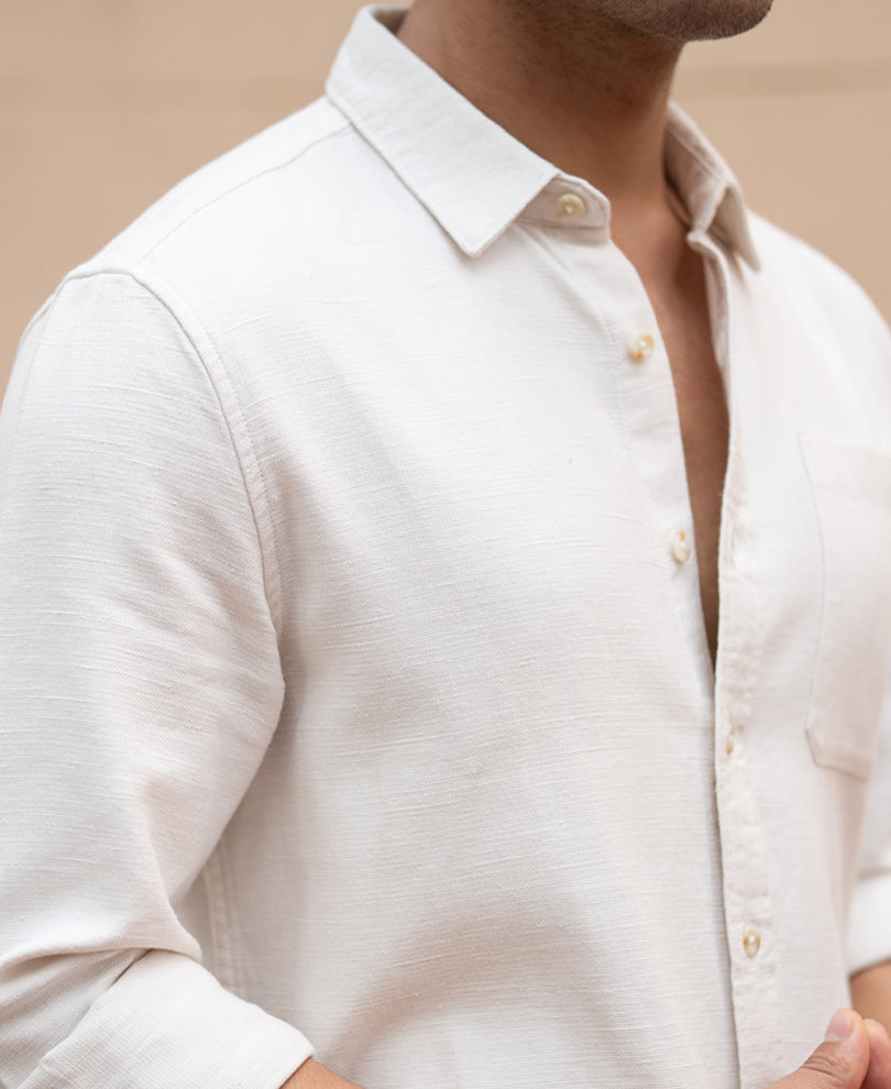Purchase this POWERLOOK linen co ord set to your cart for elevated summer dressing. Beige linen fabric forms this structured co-ord set with breathable comfort and relaxed sophistication. Natural linen texture adds subtle depth while maintaining a clean appearance. Lightweight construction keeps the outfit comfortable on warm-weather days. Coordinated shirt and trouser design creates effortless styling without extra effort. Durable stitching supports regular wear.