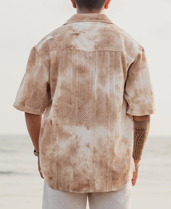 Beige Oversized Tie-dye Structured Half Sleeves Shirt