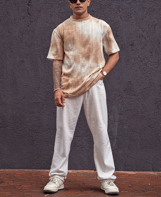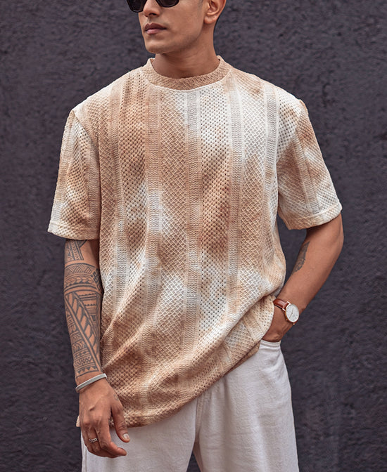 Light Brown Oversized Structured Tie Dye Print Half Sleeves T Shirt