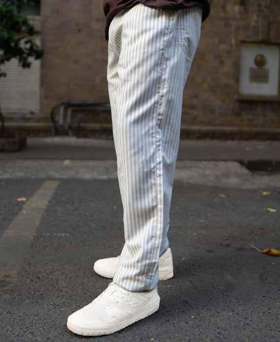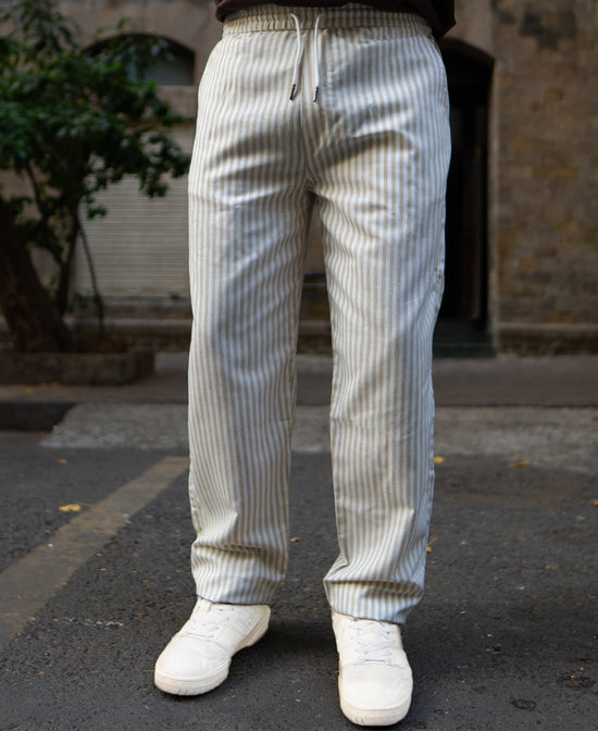 Beige Stripe Linen Pant