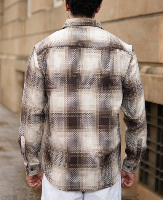 This beige structured checks shirt is a masterclass in understated style. Its neutral palette makes it a versatile partner for denim, chinos, or layered fits. A reliable classic with modern sensibility.