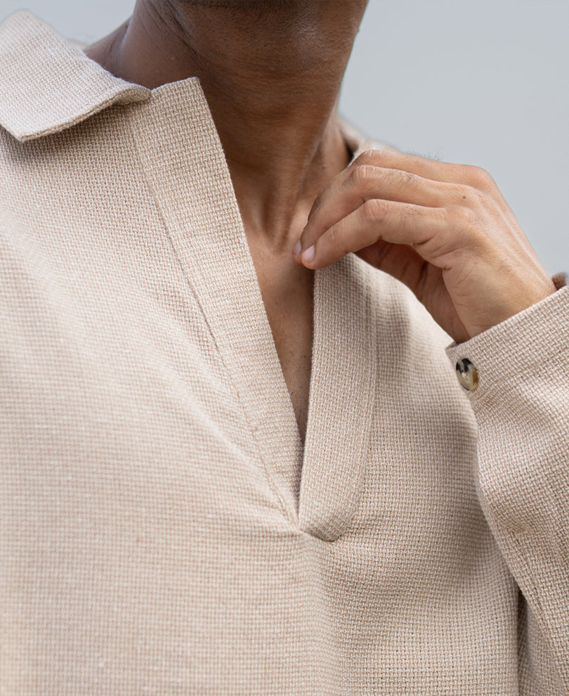 Soft beige, structured silhouette, and that clean monochrome aesthetic, this co-ord set is “main character energy.” The top drapes effortlessly, the trousers fall just right, and together they create a look that says calm, classy, and cool without even trying.