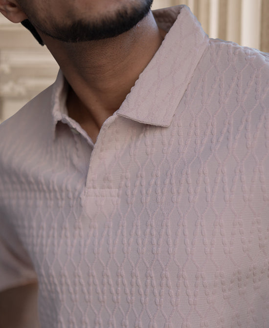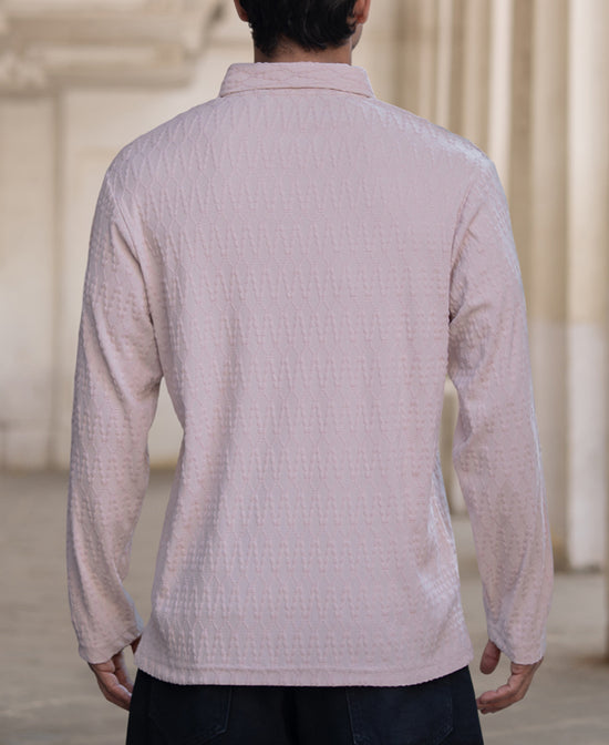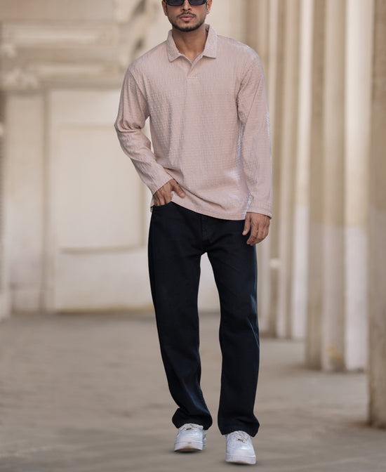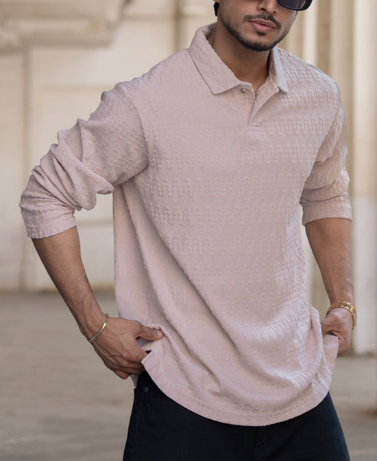 Beige Structured Regular Fit Full Sleeves Polo T-Shirt