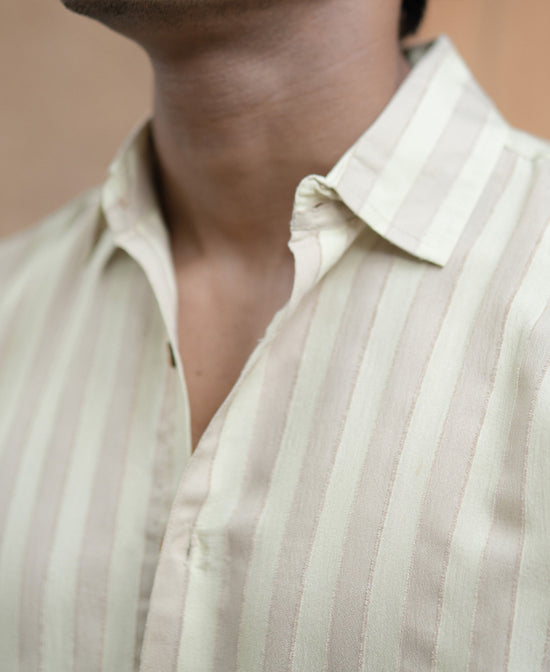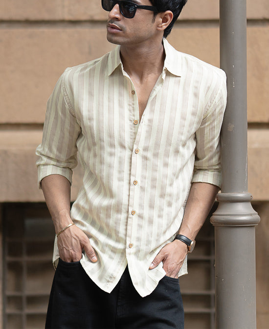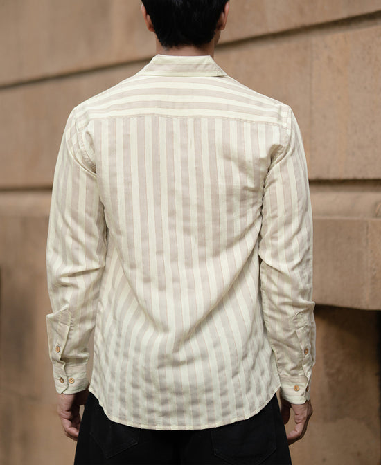 Beige Structured Self Striped Full Sleeves Shirt