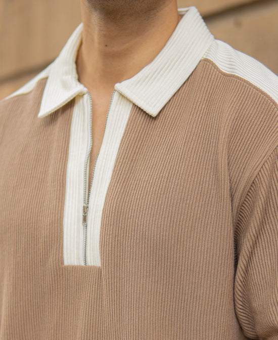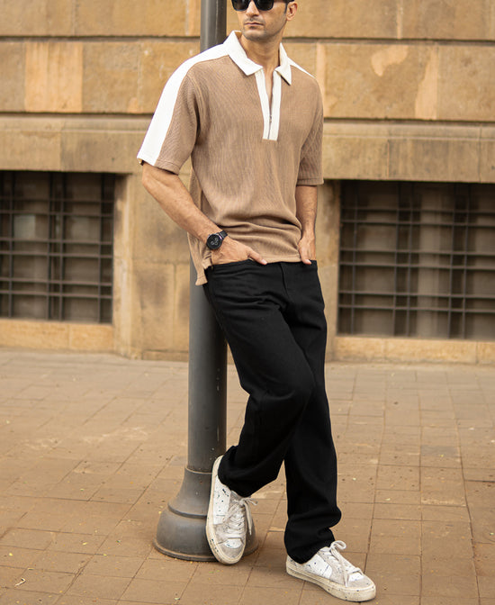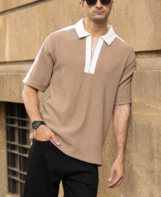 This Beige Colour Blocked Polo T-Shirt brings understated confidence to life. With clean panels and crisp lines, it balances calm tones with sharp contrast. Featuring a classic spread collar and convenient button closure, it's perfect for any occasion. It’s the kind of piece that looks effortless, feels comfortable, and carries presence without needing to prove a point.