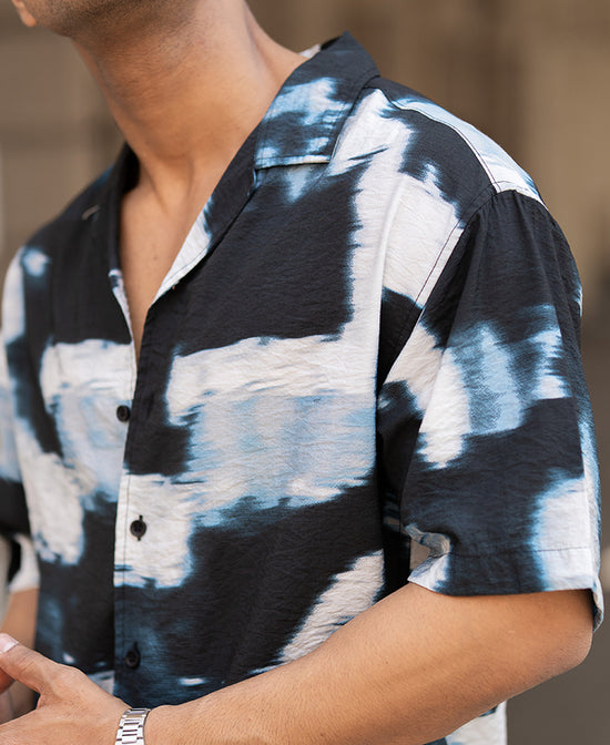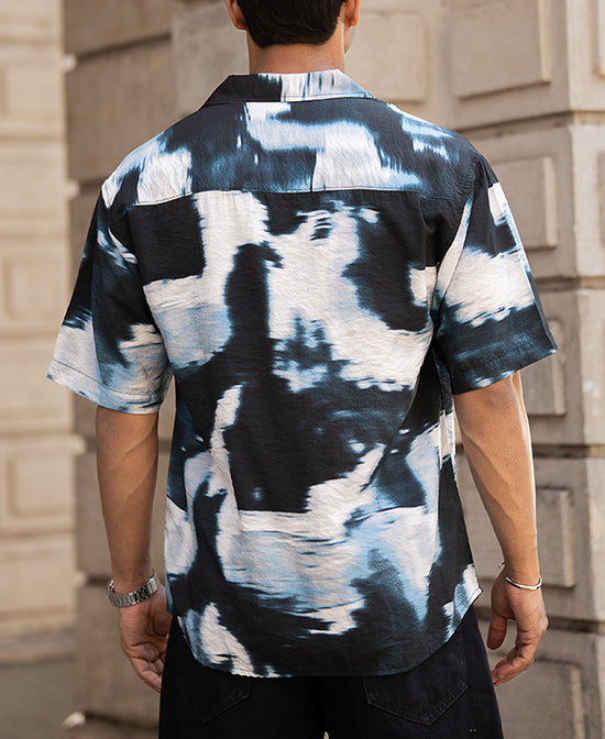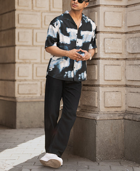 A little Cuban flair, a lot of personality. This black oversized half-sleeve shirt takes things up a notch with its abstract print and relaxed fit. The Cuban collar adds that signature effortless charm, making this an instant favorite for guys who like to stand out.