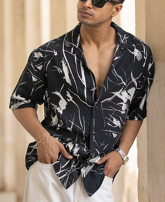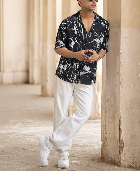 Who said oversized can’t be stylish? This black abstract flowy half-sleeve shirt blends laid-back comfort with a bold print. The relaxed fit drapes perfectly, making it an easy pick for any casual outing. When basic isn’t an option, this one steps up.