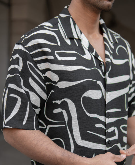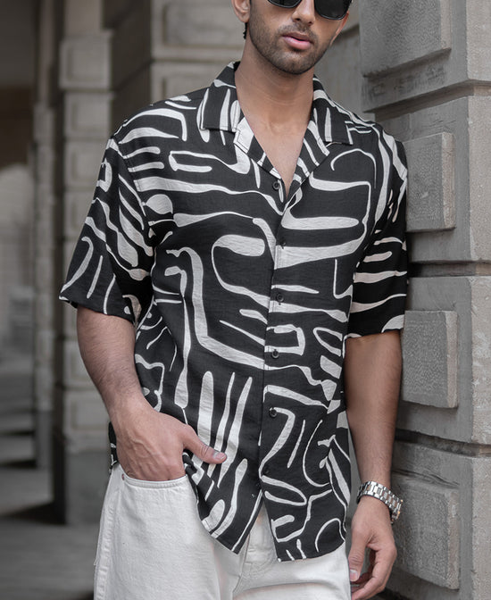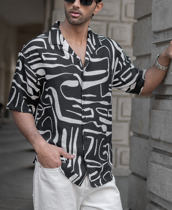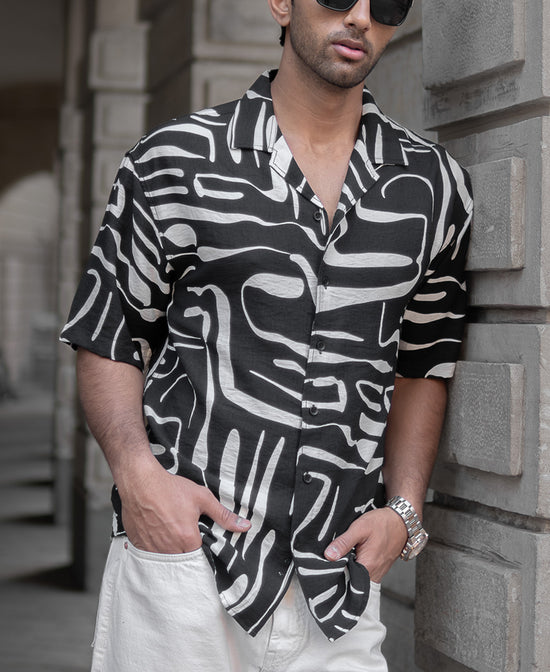 A black printed oversized shirt that does more than just complete an outfit—it creates a presence. The oversized fit gives it a commanding yet effortless appeal, while the abstract print adds a touch of unpredictability. The fluid drape complements movement, making every step feel more confident. This abstract flowy shirt is a piece for those who understand that style isn’t just about wearing clothes, it’s about owning them.