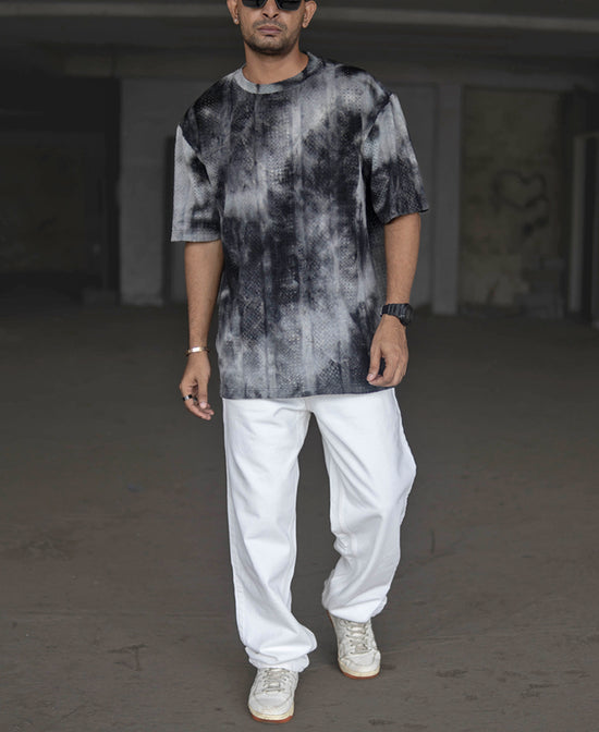 Black and Grey Oversized Tie Dye Printed Half Sleeves T Shirt