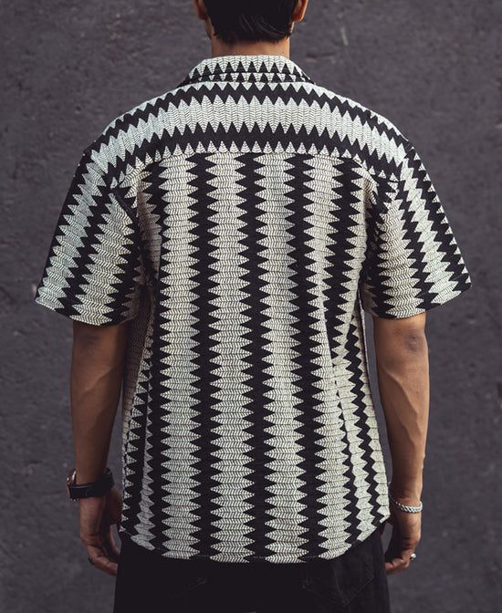 Make a statement with this black and white structured oversized half-sleeve Shirt. The oversized fit offers a relaxed look, while the structured fabric gives you a distinct look. Stand out from the crowd with confidence with this structured shirt.