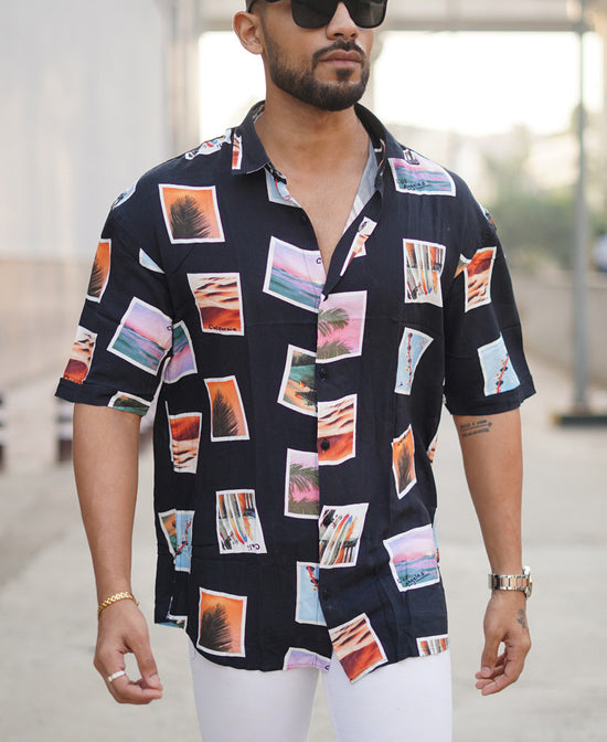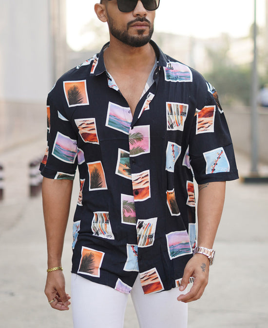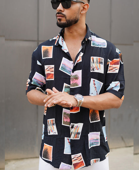 Forget the traditional definition of printed shirts for men. We are redefining them with cool printed shirts like this. The all-over beach print can be your go-to casual wear, beachwear, or next-party uniform. Constructed with a spread collar, half sleeves, and slim fit in a Cotton Viscose-Rayon fabric, it sure makes streetwear easy and comfortable like never before.