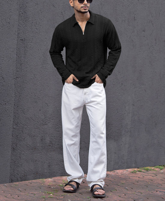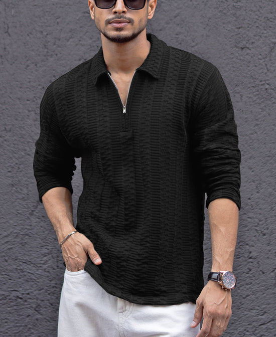 The Black Collar Neck Regular Fit Full Sleeves T-Shirt is your new go-to piece for effortless style. Made from soft polyester, this black t-shirt offers a regular fit that’s comfortable without being too loose. Featuring a clean, crisp collar neckline, this shirt balances simplicity with a touch of class—perfect for any occasion.