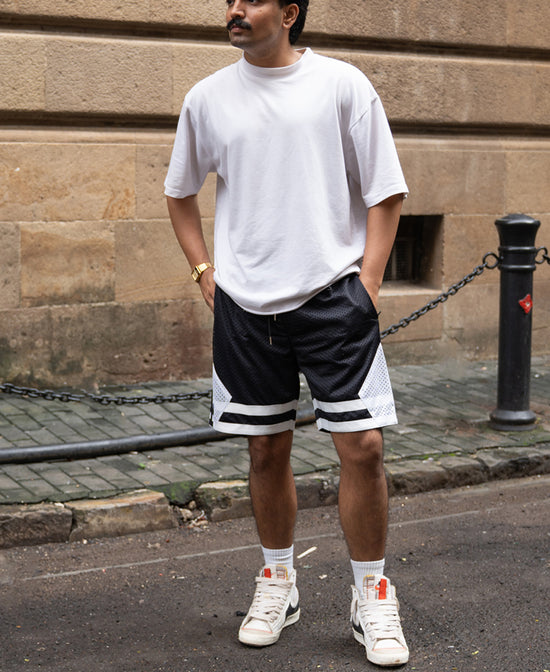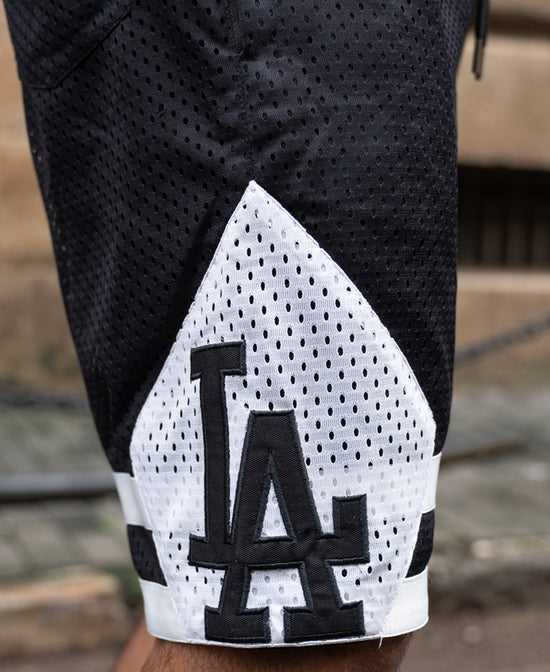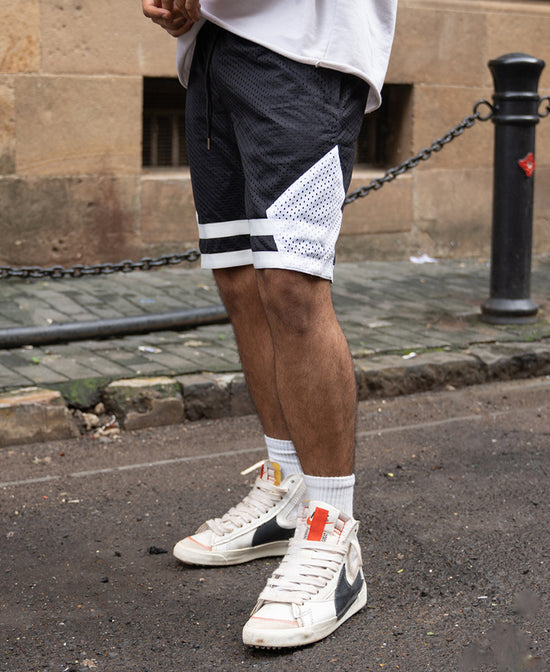 Built for free movement but made to style, these black mesh shorts are a nod to athletic streetwear. The contrast embroidery and bold white detailing give them a sharp, graphic edge. Pair them with a tank or oversized tee, and you’ve got your off-duty look sorted. Own the gym, street, or wherever you step in