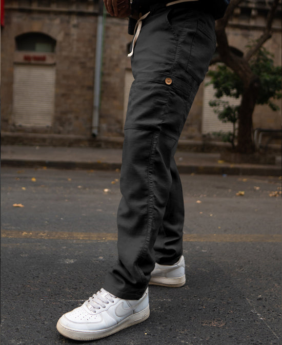 For all the things you want to carry—except extra drama. These cargos keep it clean in cotton black, with just enough pocket power to look cool without going tactical. A regular fit that stays easy, from lazy Sundays to late-night errands.