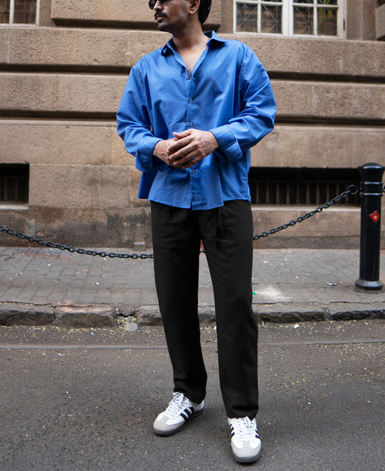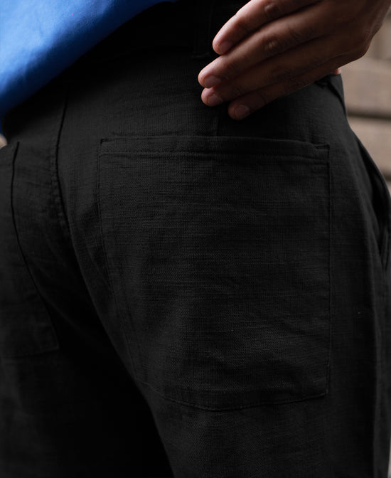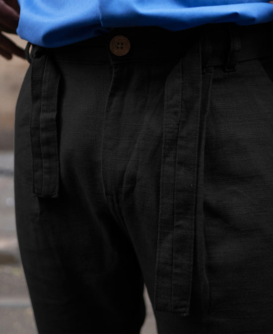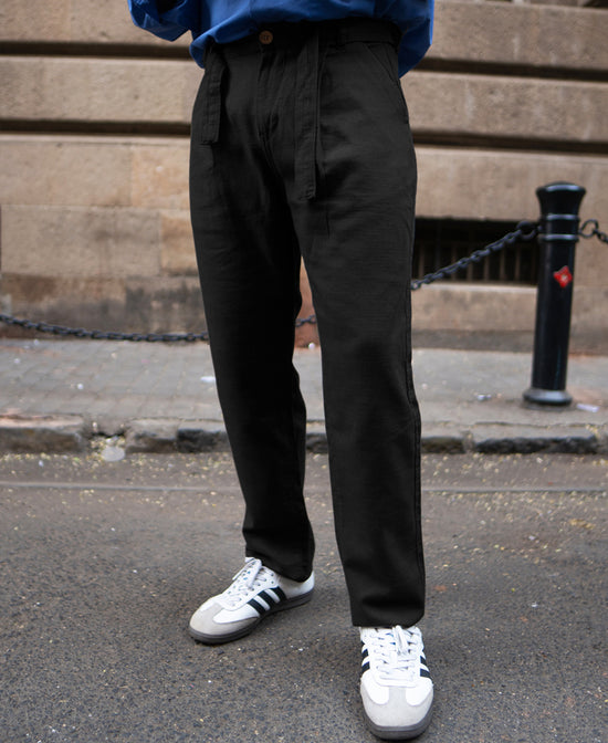These Black Cotton Pants come with a ready-to-go belt, giving you an instantly polished look without having to borrow one from your friends. Crafted from breathable cotton, they offer a clean, tailored silhouette that’s sharp but never stiff. Whether it’s a last-minute plan, a day at work, or an evening out, these pants keep you styled, sorted, and always one step ahead.
