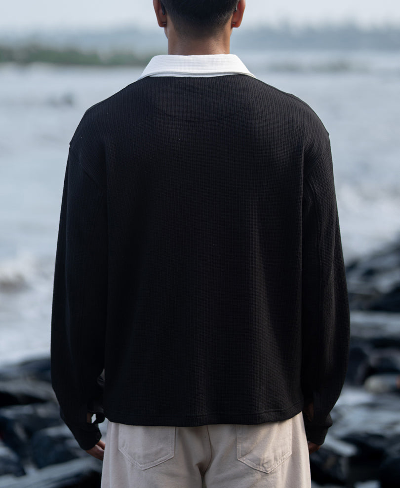 Made from premium cotton, this black tee stands out with its contrast embroidery a detail that adds just the right amount of intrigue. Cut in a relaxed fit for all-day comfort, it’s the kind of piece that pairs effortlessly with anything from your wardrobe from denim, to cargos, or even under an overshirt