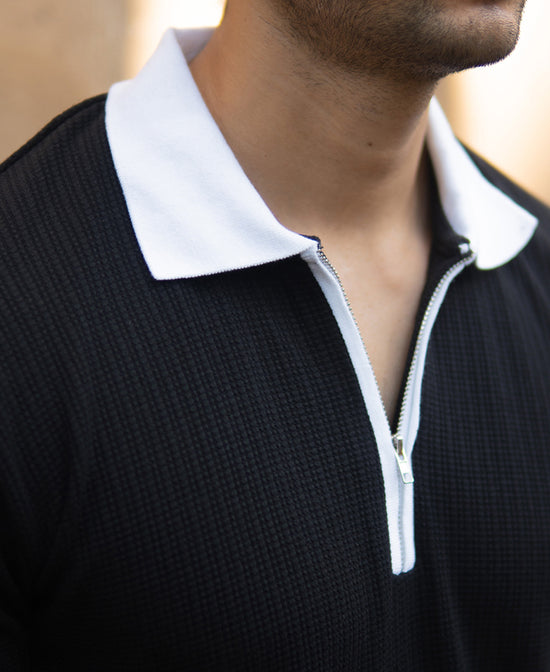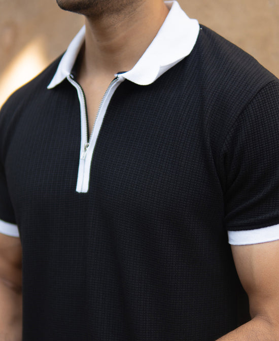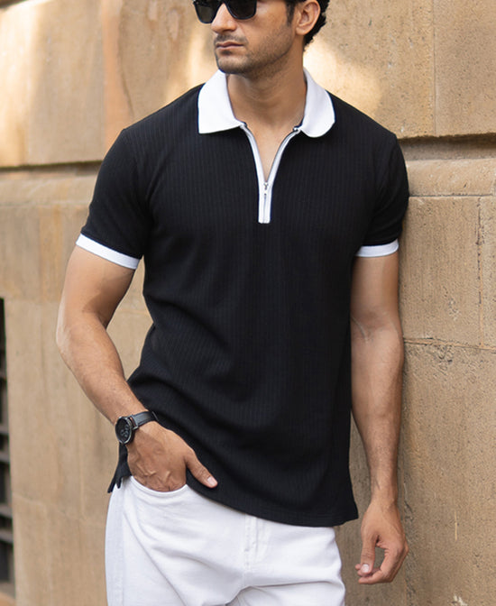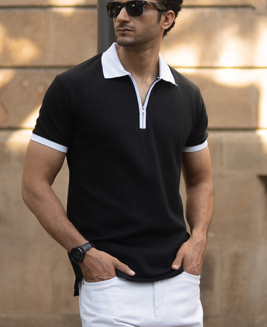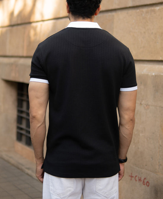 Black Knit Contrast Polo T-Shirts