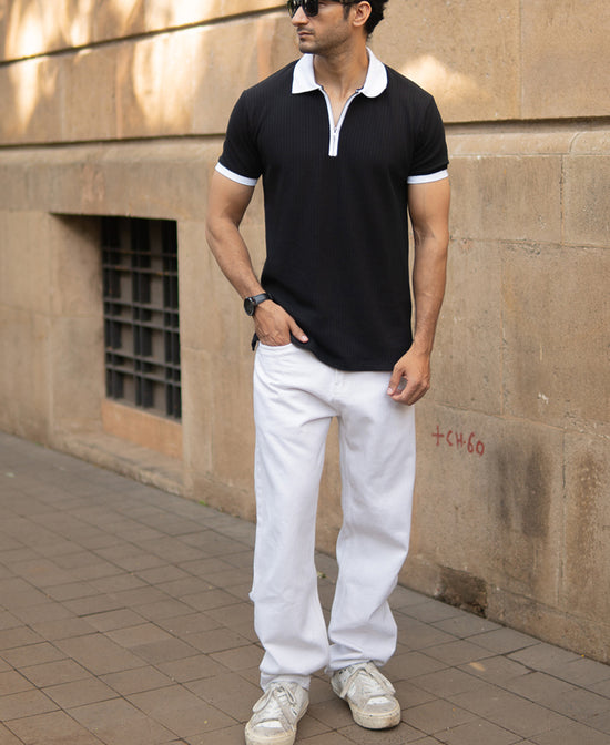 A little contrast goes a long way. This Black Knit Contrast Polo T-Shirt is equal parts refined and relaxed. The rich tone gives depth; the sharp collar adds pop. It’s that rare tee that feels casual yet collected like you didn’t try too hard, but still crushed it.