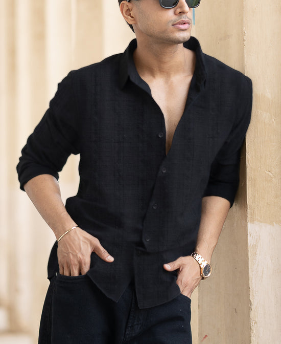 Classic black, minus the weight. This Black Lightweight Structured Shirt packs in 100% cotton dobby fabric, meaning it’s breathable, comfy, and drapes like a dream. Whether you're flexing on the streets or pulling off that “effortlessly cool†look, this one’s got your back. No effort, all impact.