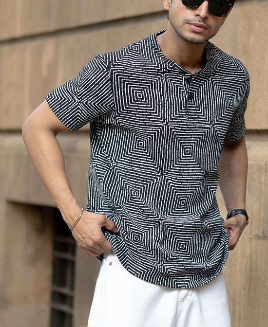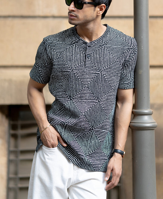 We all hate rules and this black Henley agrees and follows the same path. Featuring an intricate maze-like pattern that gives it depth and character, this one’s for the guys who don’t settle for basic. The half placket adds that rugged charm, and the textured feel makes it stand out at just the right volume. Go ahead, get lost in the details