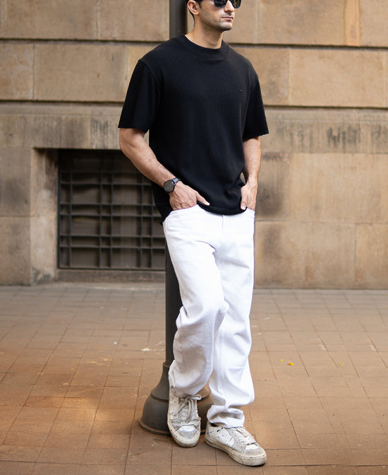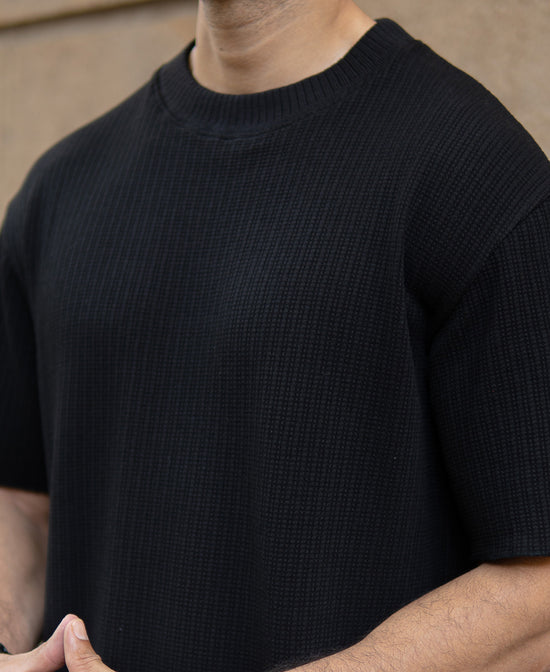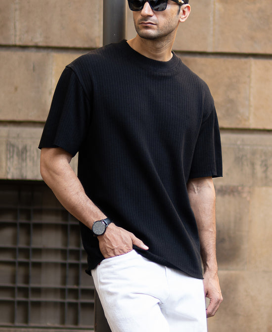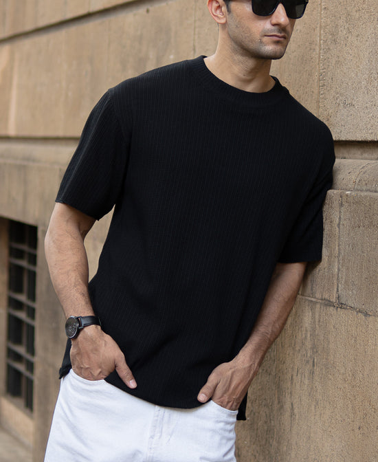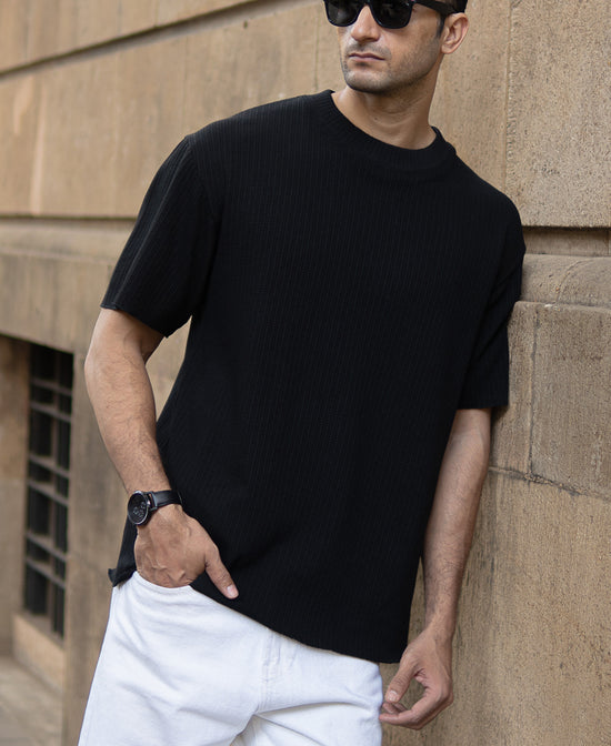 Black Oversized Structure Half Sleeves T-Shirt