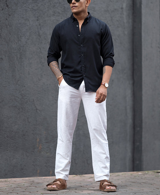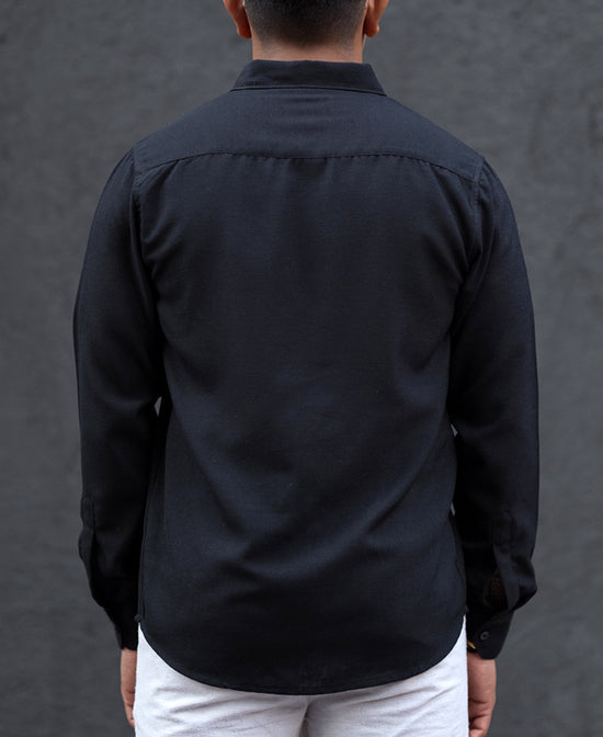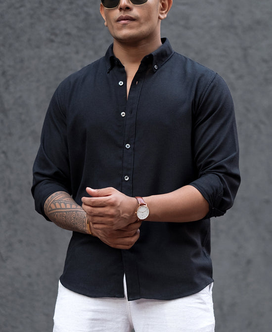 The silent showstopper. This plain black shirt holds a world of versatility and elegance within its fabric. With a fit that flatters and a tone that commands attention, it’s made for moments when simplicity is the ultimate power move.