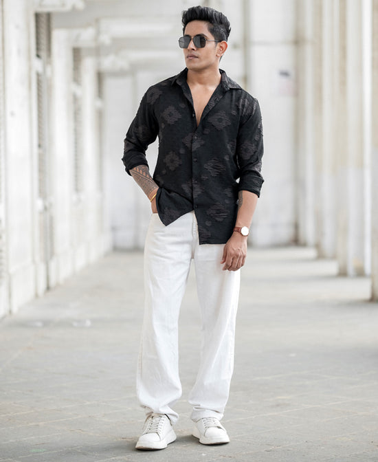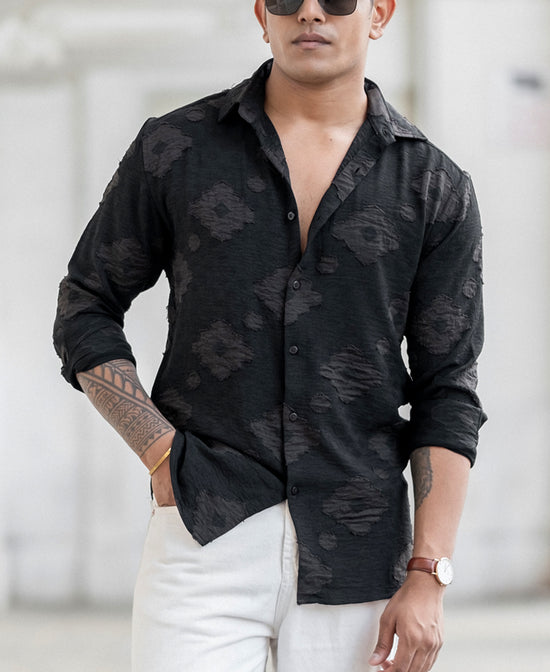 This black shirt says “I’ve got style†without shouting it. With printed details that add depth and a fit that’s all confidence, it’s your silent showstopper.