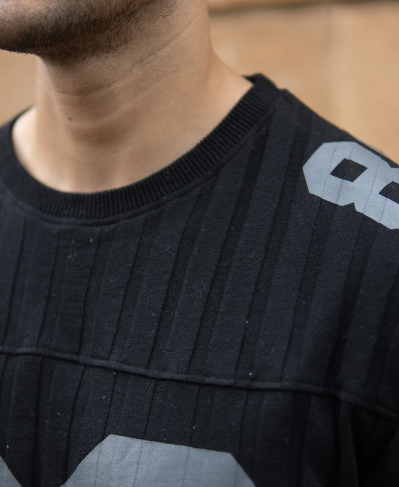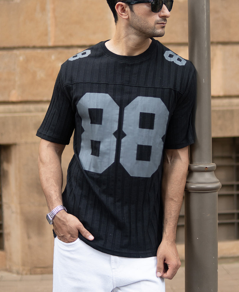 Graphic, grounded, and good to go at anytime. This Black Printed Structure T-Shirt plays with dimension; its structured fabric gives it weight, while the geometric print adds energy. Not too loud, not too plain, it lands in that perfect middle ground where design meets comfort. Great with denims, better with attitude.