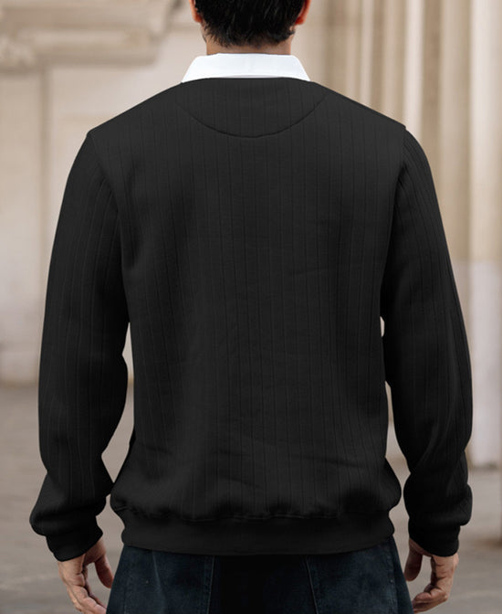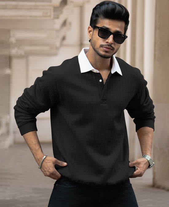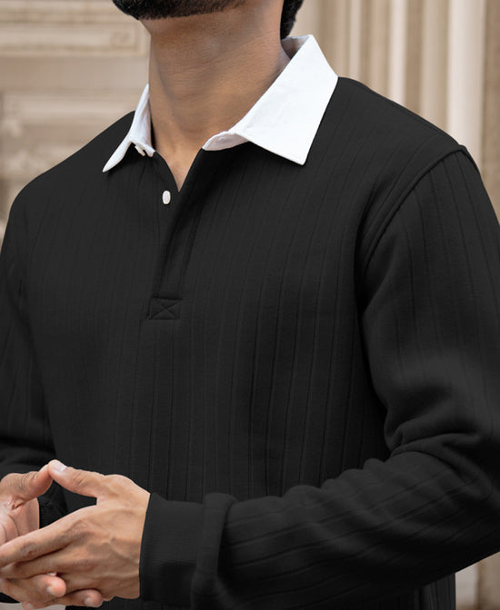 Black Regular Fit Full Sleeves Collar T-Shirt