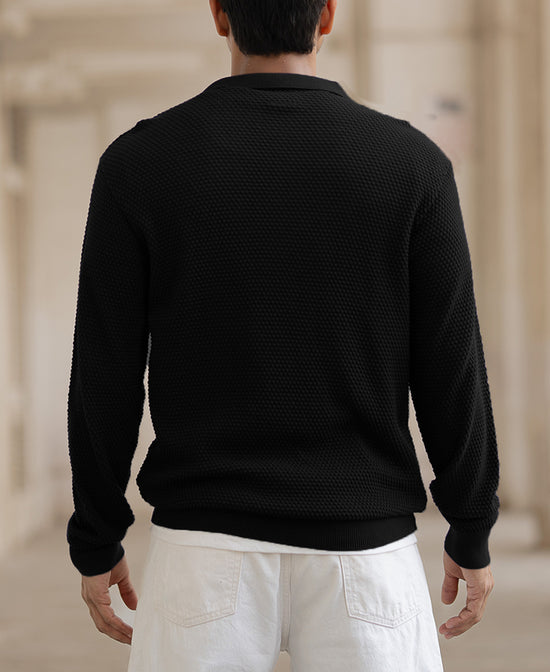 Black Regular Fit Full Sleeves Structured T-Shirt