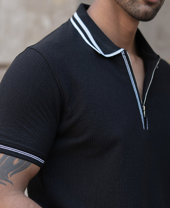 Black Regular Fit Structured Half Sleeves T-Shirt