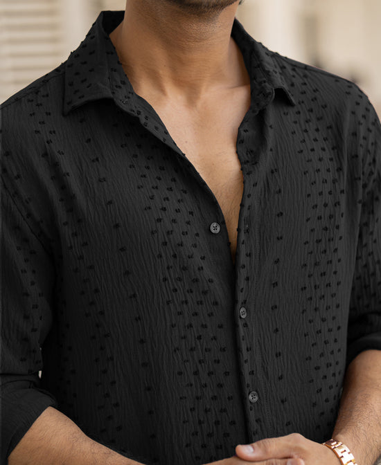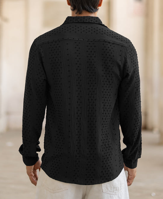 The Black Striped Structured Regular Fit Shirt is here to redefine sharp. Made from 100% polyester, it offers a sleek, polished vibe with zero compromises on comfort. The structured stripes add depth to your style, making it the perfect choice for the man who likes to stand out without saying a word. A versatile piece that can take you from day to night, effortlessly.