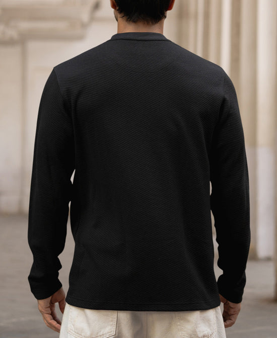 Black Structured Regular Fit Full Sleeves T-Shirt