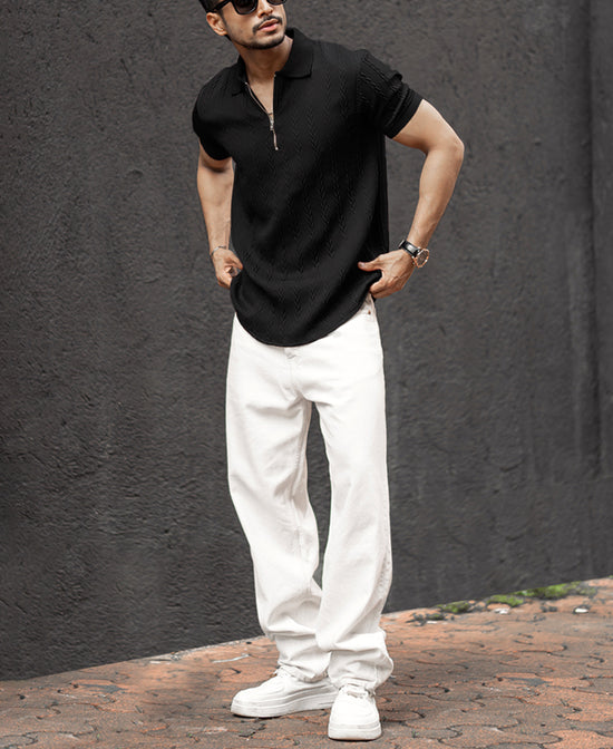 Black Structured Half Sleeves T-Shirt