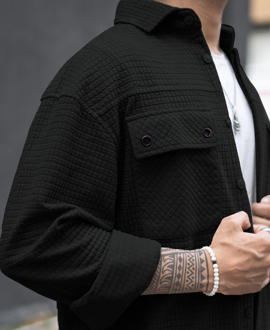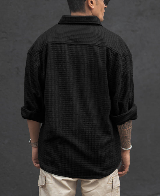 Black Structured Knit Full Sleeves Oversized Shirt