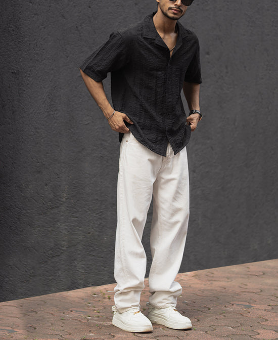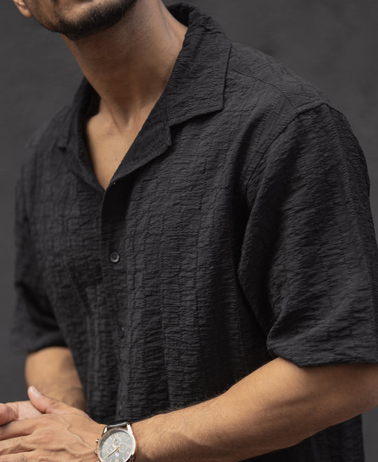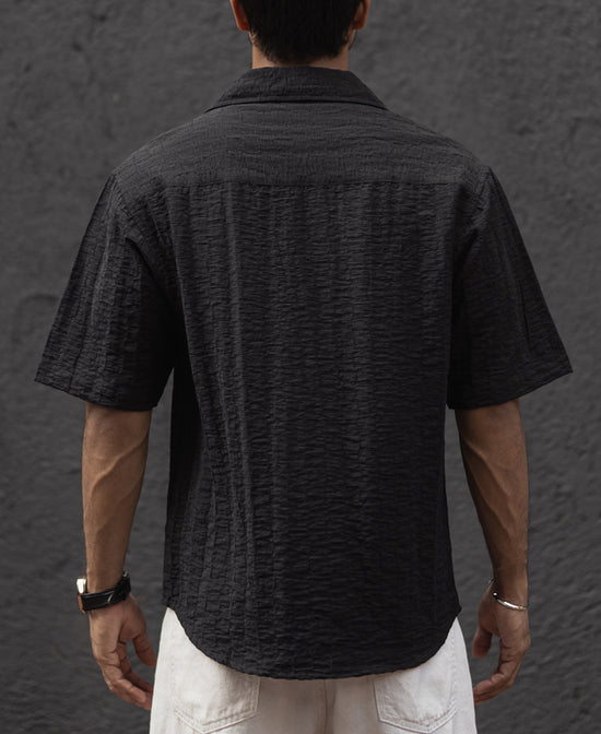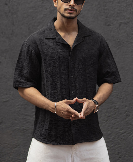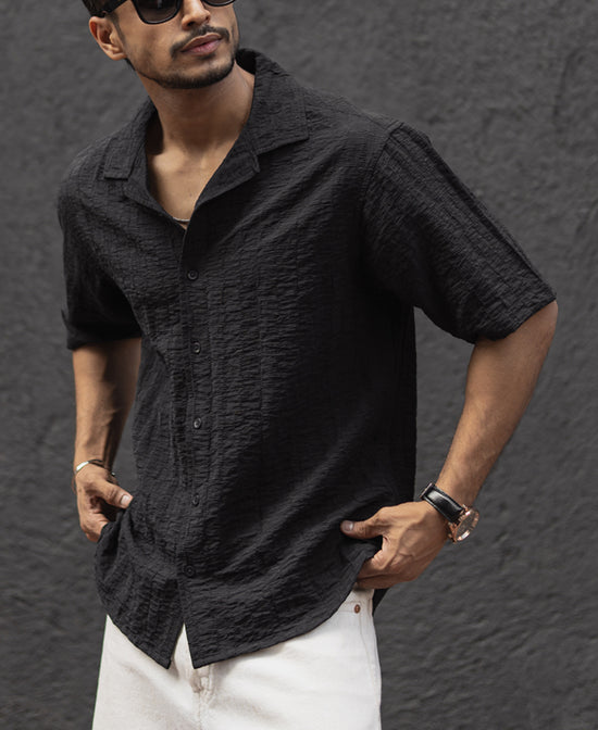 Where comfort meets structure. This black oversized shirt redefines relaxed styling with its textured design and a roomy fit. Perfect for casual days or layering up, it’s your go-to for a bold yet laid-back vibe. Style it over a tee or wear it solo—either way, it’s an effortless statement.