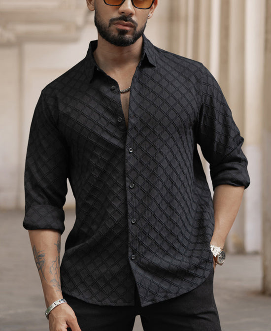 Classic black, but make it structured. This full-sleeve shirt is anything but basic, with its sleek lines and regular fit that flatters every frame. Built for those who like their casual with a side of sophistication, it's the kind of shirt you’ll reach for, day after day.