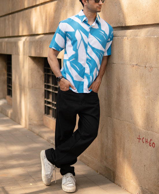 Express yourself with ourBlue Abstract Print Lightweight Shirt. This vibrant piece brings fun and flair to your wardrobe, perfect for casual days, festivals, or lounging in style.