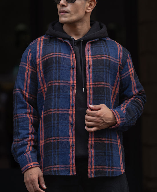 Blue And Orange Checks Regular Fit Full Sleeves Shirt