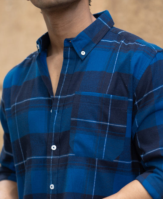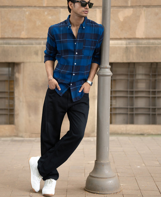Checks thats beyond squares. Crisp, bold, and built to get compliments, this blue checked shirt is your ticket to effortless cool. Tuck it, untuck it - it wins either way.