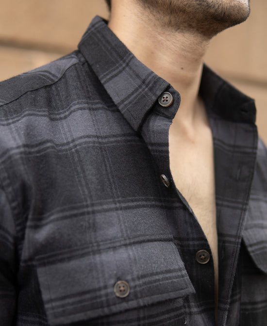 A timeless wardrobe essential, this black checkered shirt features a button-down collar that keeps the neckline crisp and in place. The white and grey overcheck pattern adds visual interest without overpowering, making it versatile enough for both office layering and weekend casual wear. Crafted from a soft yet durable cotton blend, it delivers comfort with lasting shape retention.