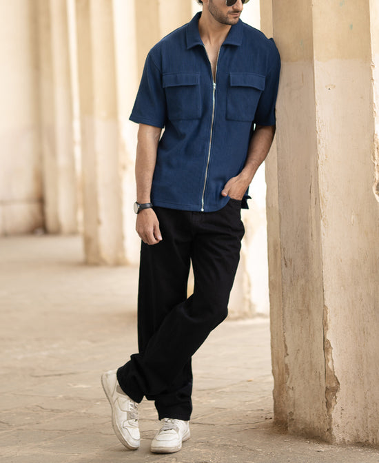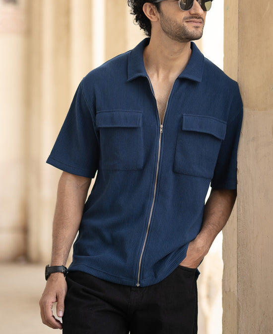 This Blue Corduroy Oversized Half Sleeves Shirt carries the richness of deep tides and the ease of a perfect breeze. Calm like the ocean, bold like the waves. Crafted with high-quality materials and impeccable stitching, this shirt is a must-have for any fashion-forward individual. The velvety corduroy texture adds depth, making it the kind of piece that feels as good as it looks. Draping effortlessly over your frame, it brings a relaxed yet confident vibe that never tries too hard. Button it up for a refined touch or let it flow free. Either way, you create your own tide.
