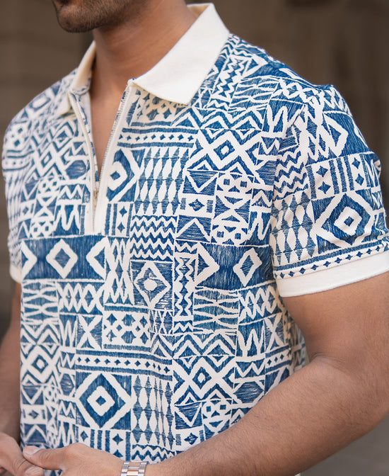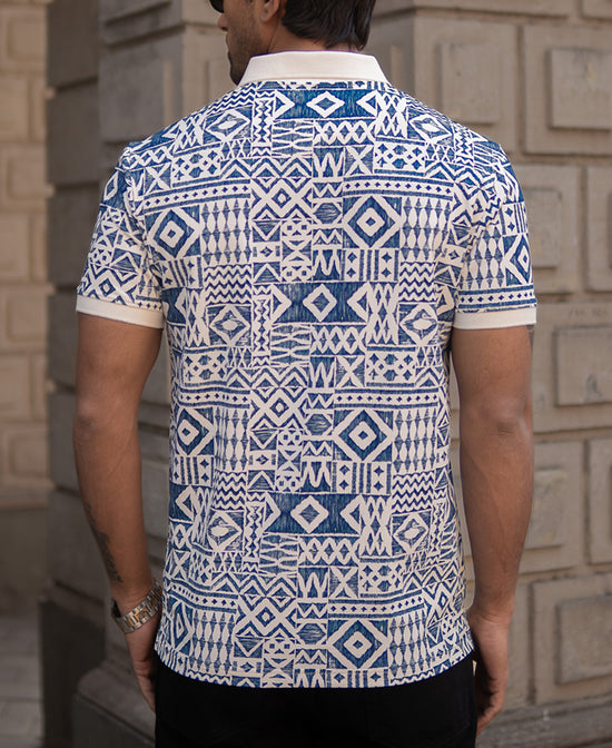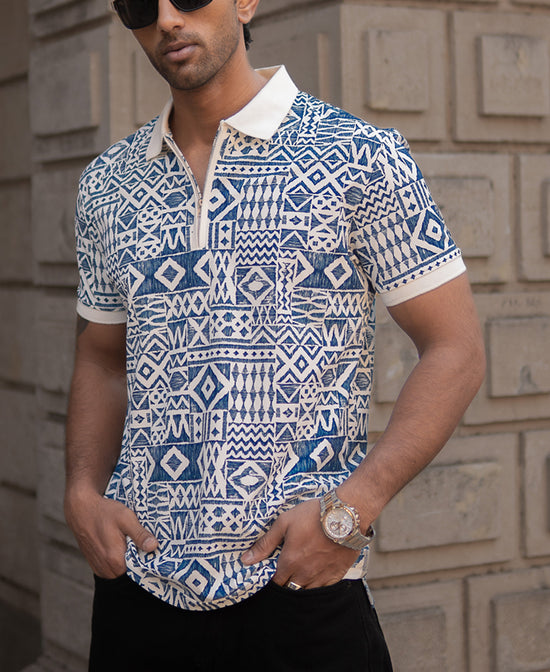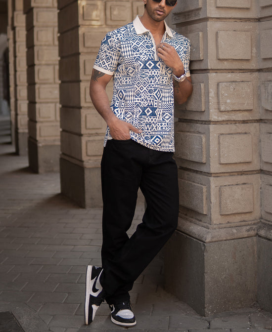 Classic polo, but with a pattern upgrade. The geometric print adds an edge, while the blue tone keeps things easygoing. Whether it’s a work call or weekend plans, this polo does both without breaking a sweat. Pair it with jeans or chinos, and you’re sorted.
