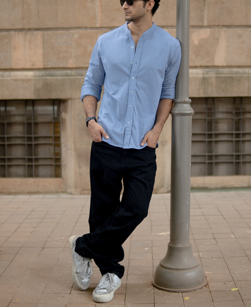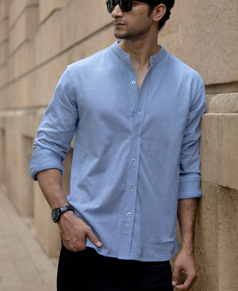 Minimal collar, maximum impact. This knitted mandarin collar shirt brings subtle texture and clean lines, with just the right edge of sophistication. Wear it for evenings out or casual Fridays; it adapts as easily as you style it.