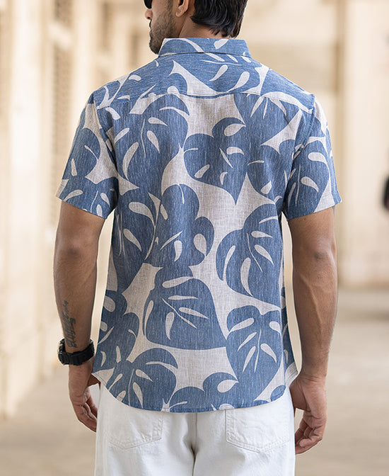 Blue Leaf Print Shirt