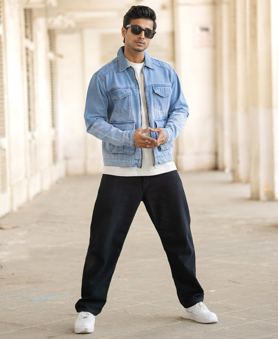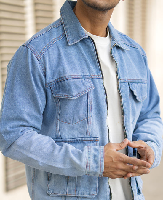 More pockets, more style. This blue multi-pocket denim jacket isn’t just practical, it’s got that rugged edge. With a fit that’s just right and enough room to store the essentials, it’s perfect for when you need to carry your things without looking like you’re trying.