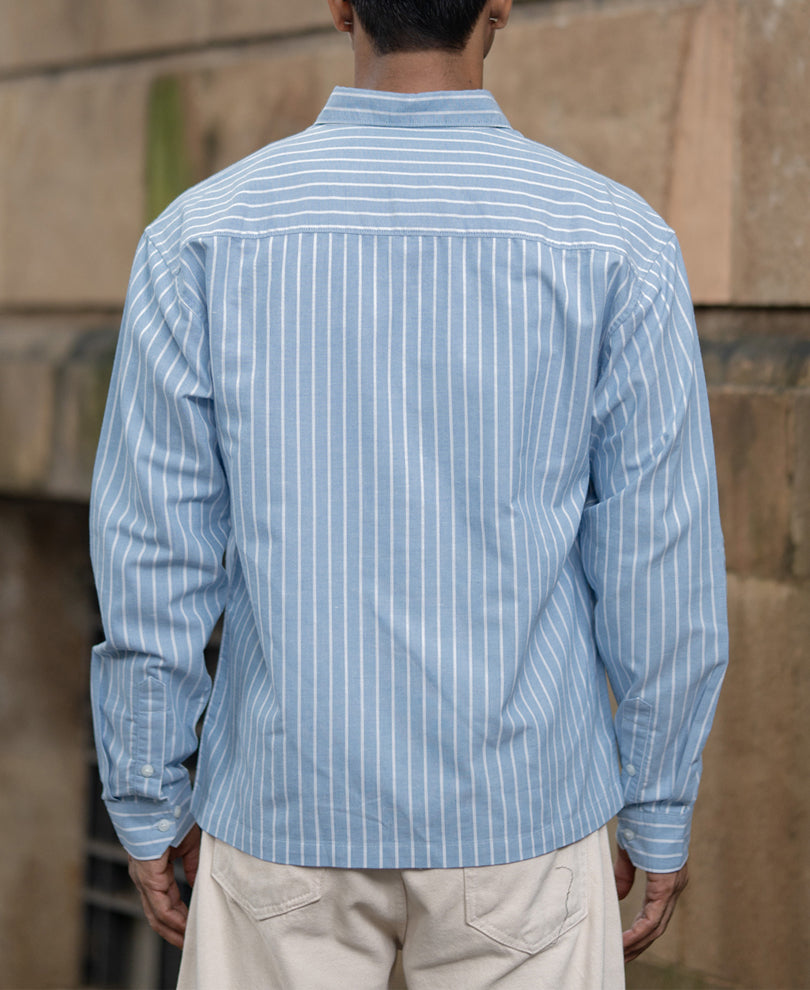 Blue Oversize Stripe Shirt With Print
