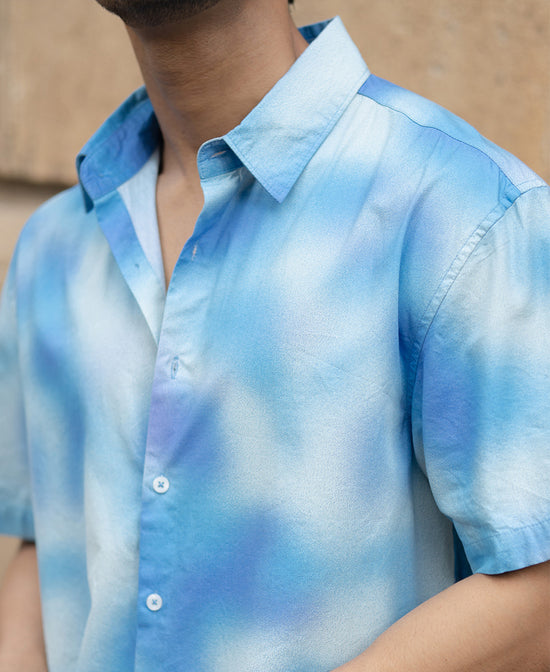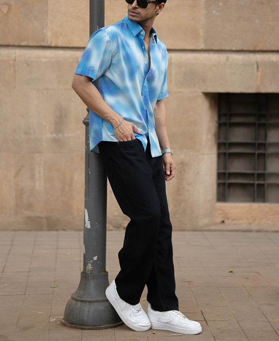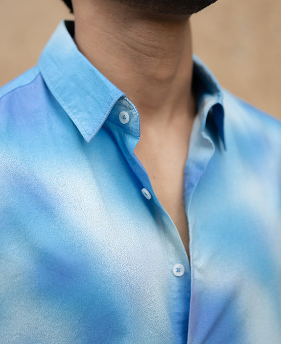 Style it like an abstract canvas, because this Blue Spray Print Shirt adds an expressive burst to your collection. The painterly design, combined with a flowy fit, makes it a standout for art events, beach nights, or just when you’re feeling bold.